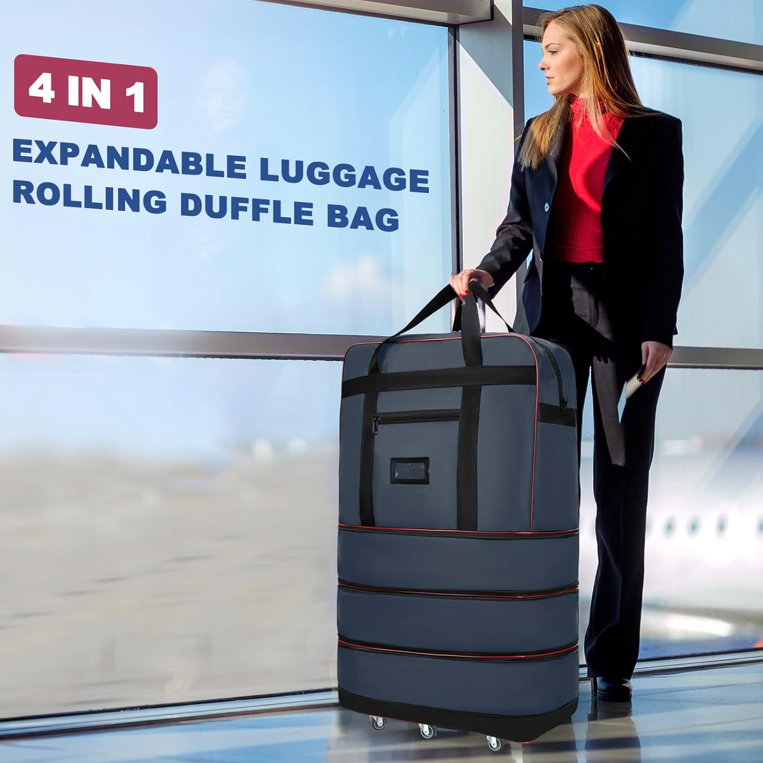Design: There is a towing rope can pull the expandable duffle bag with wheels better. The duffle bag for travel with wheels has only one opening at the top, which is convenient for putting things in and folding. If you hold it by hand, you can also carry it on your shoulders to reduce the pressure.The bottom has 5 upgraded version of the silent universal wheels