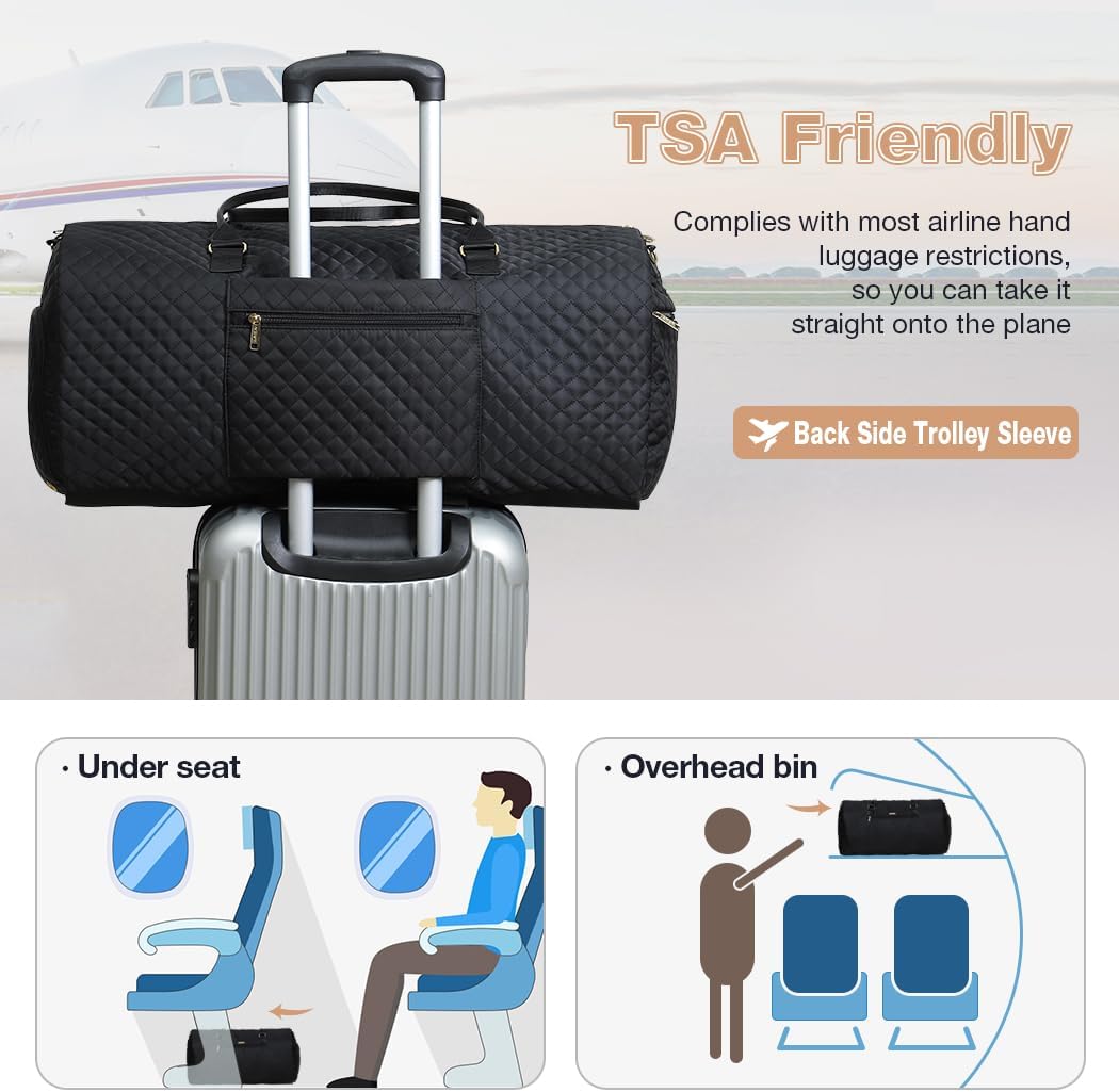 Garment Bags with 6 Set Packing Cubes, Garment Convertible Weekender Bag for Women, Large Carry On Garment Bags for Travel, Duffle Bag Garment Bag Gifts Black Color