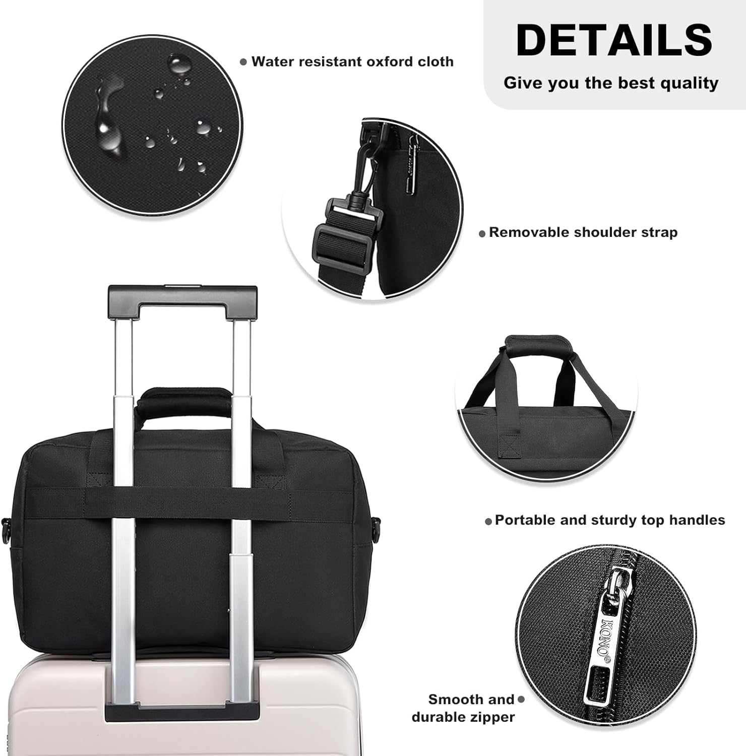 Kono Travel Duffel Bag 20L Under Seat Carry-on Bag Sports Tote Gym Bag Weekender Overnight Bags 15.75″x9.84″x7.87″ Black