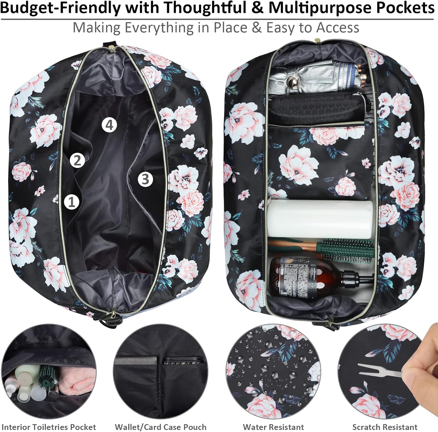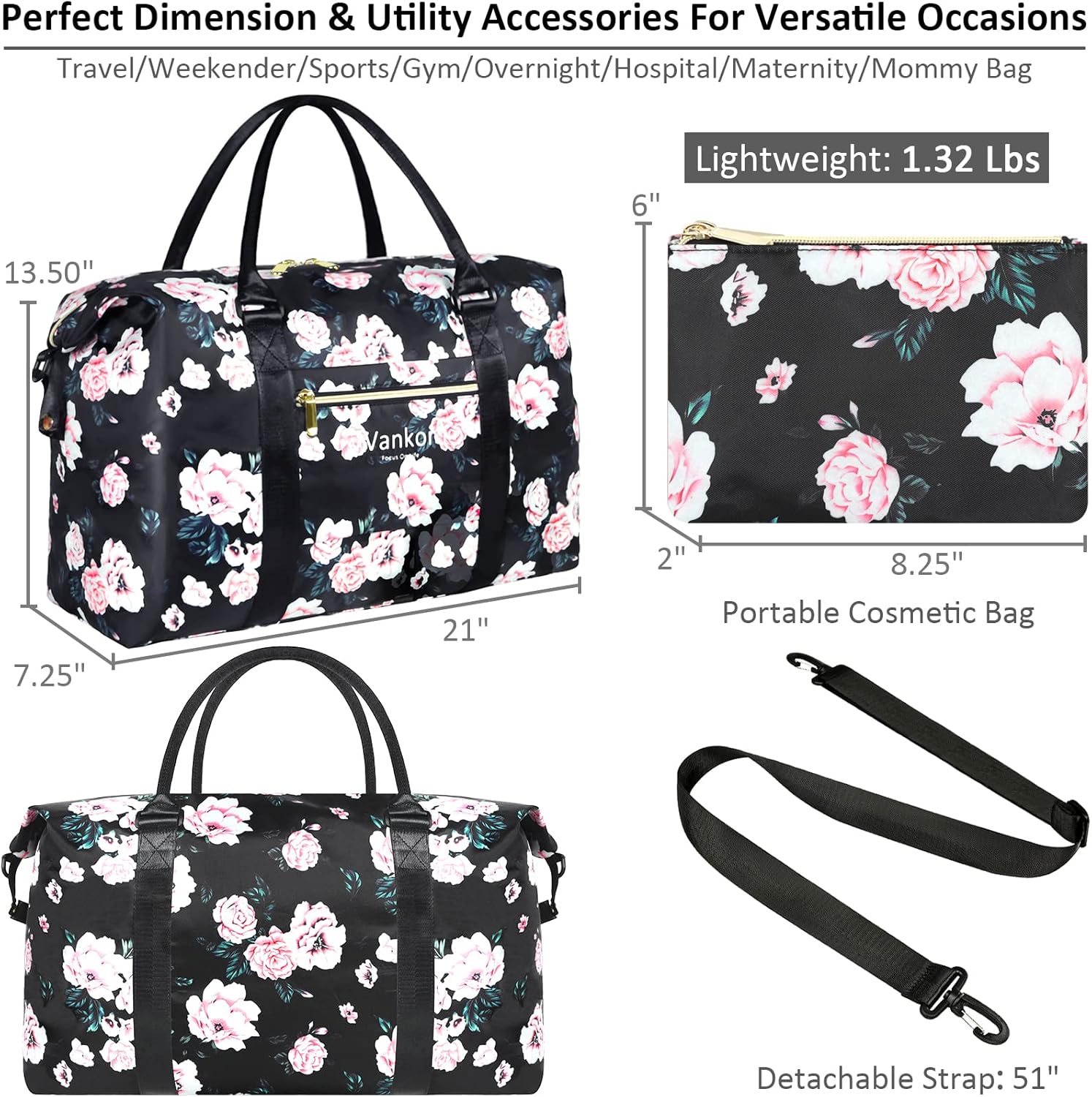 Large Duffle Bag for Travel Waterproof 21 Inch, Vankor Gym Duffel Bag for Women Men Durable Carry on Weekender Overnight Sports Luggage Weekend Beach Yoga Workout Hospital Bag Black Pink Floral