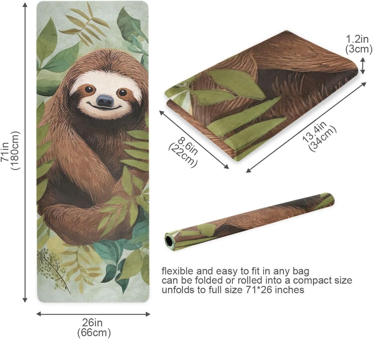 Sloth Yoga Mat for Women Men 71″ x 26″ Non Slip Exercise & Fitness Mat 1mm Thick Workout Mat for Yoga, Pilates, Come with Storage Bag