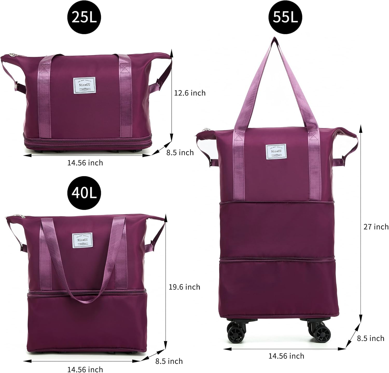 【Detachable Wheels for Added Convenience】: We understand that sometimes you may want to use your luggage bag as a traditional duffle bag or carry it by hand. That’s why we’ve designed our bag with detachable wheels. Simply remove the wheels when you prefer to carry it or easily attach them when you need the convenience of rolling your luggage.