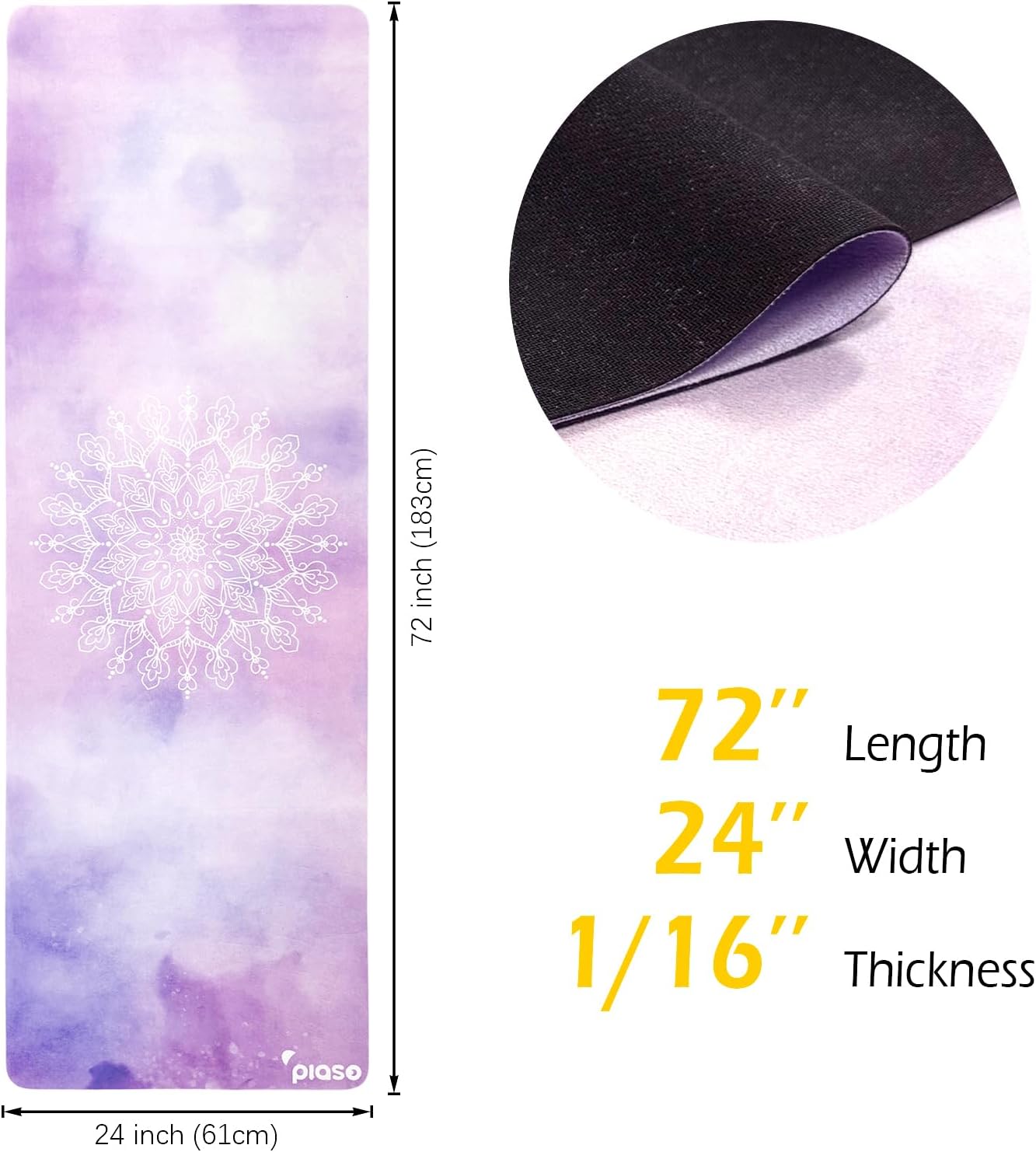 【NON-SLIP RUBBER BASE】 PIASO’s Eco friendly yoga mat are made of 100% natural high density rubber base. Non slip and grasp the ground without moving.
