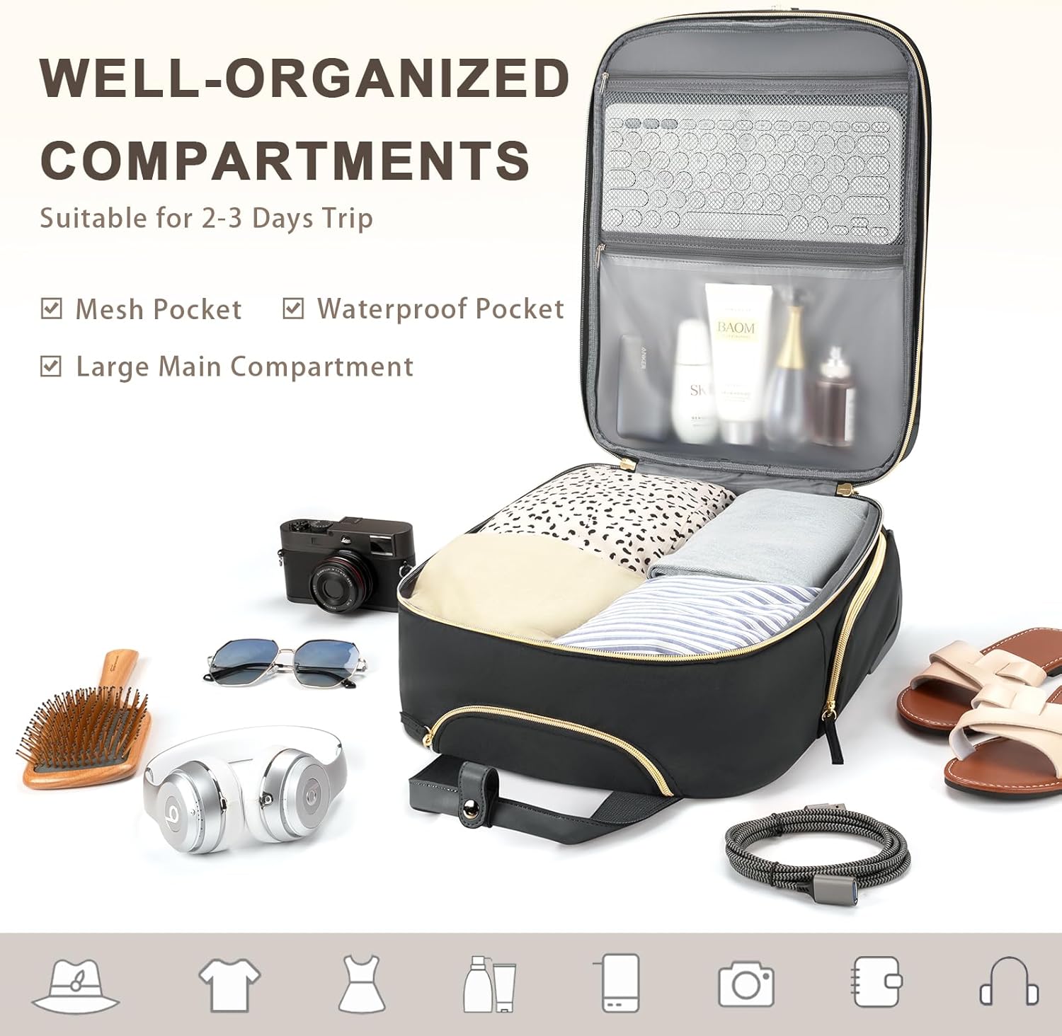 Be the first to review “Underseat Carry On Luggage with Wheels, Multiple Compartments Airline Approved Personal Item Bag, Travel Carry-On with Leather Handle, Lightweight Rolling Suitcase for Women, Black Gold, L”