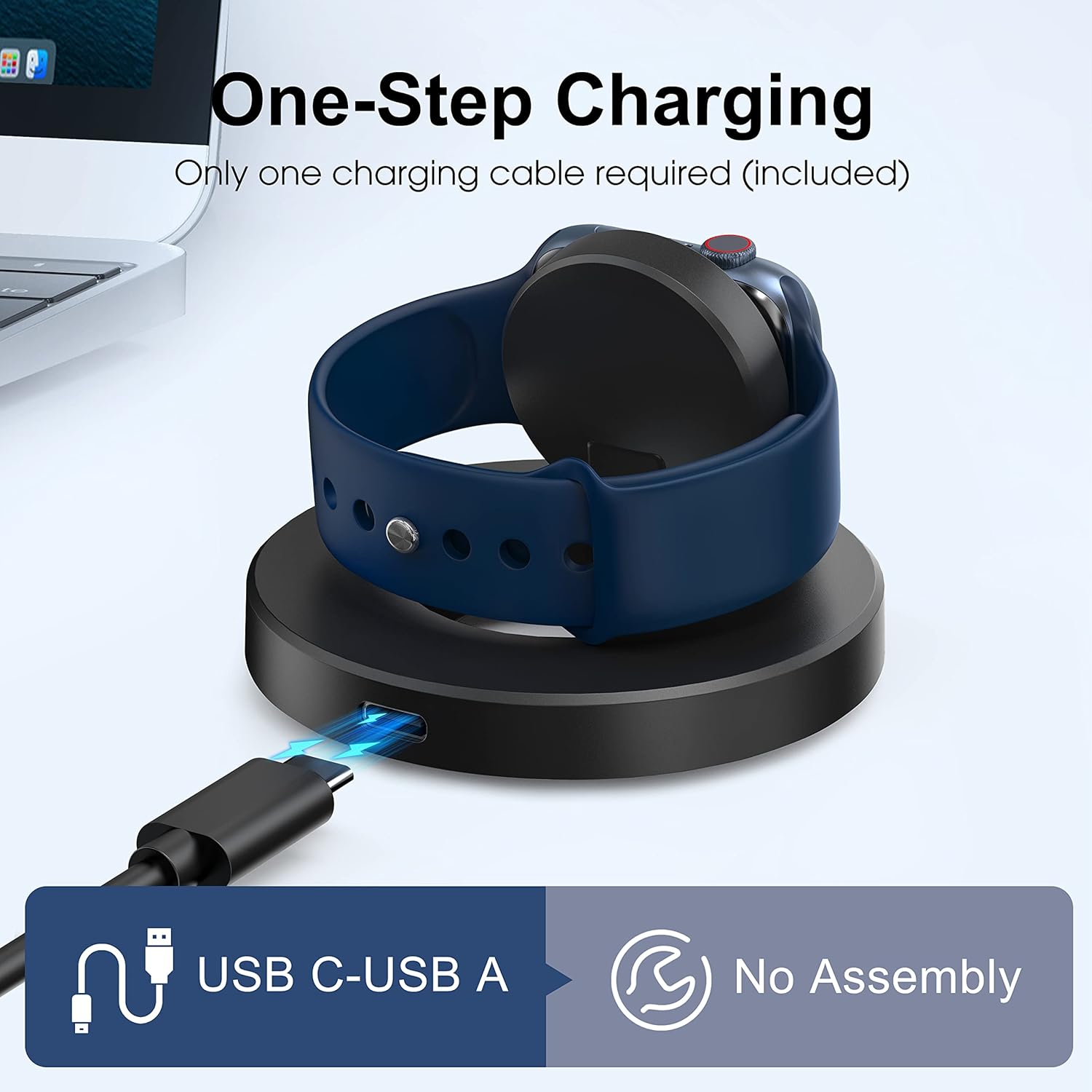 One-Step Charging Stand: The watch charging stand built-in a magnetic charger for your smartwatch, strong magnetic allows you to adjust the angle freely without deviating from the charger center. Easily dock your Apple Watch with shock absorption and high-temperature resistance. Say goodbye to annoying installation