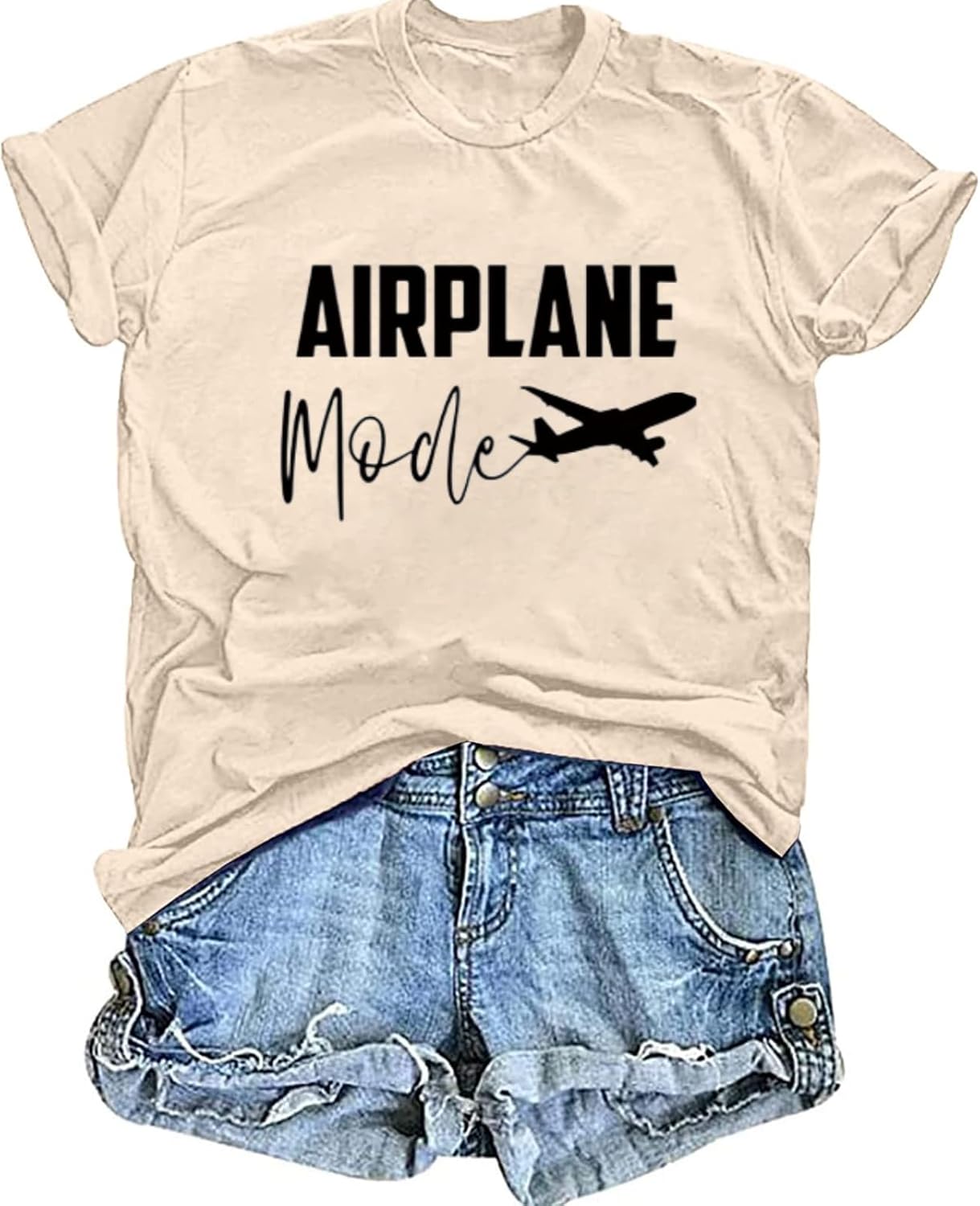 Be the first to review “Women Airplane Mode Shirt Funny Letter Print Travel Tee Cute Graphic Summer Casual Short Sleeve Tee Tops”