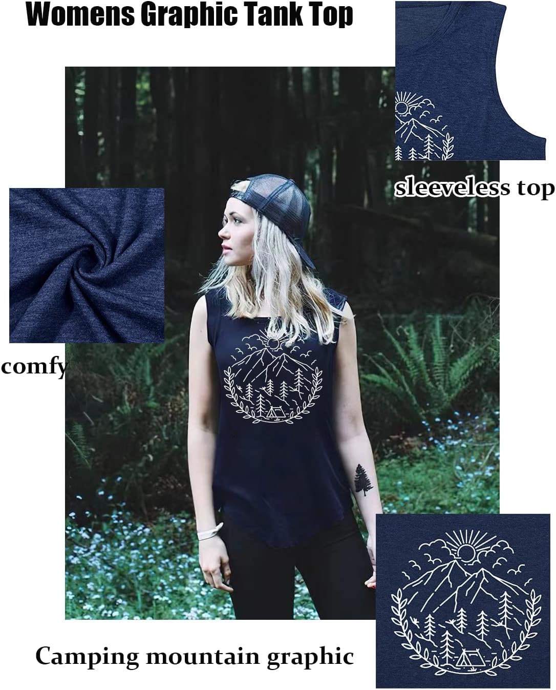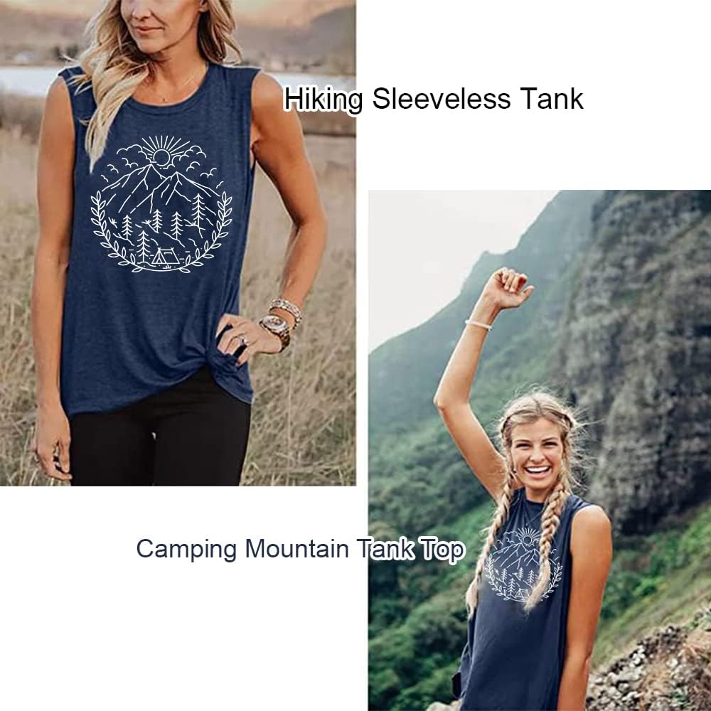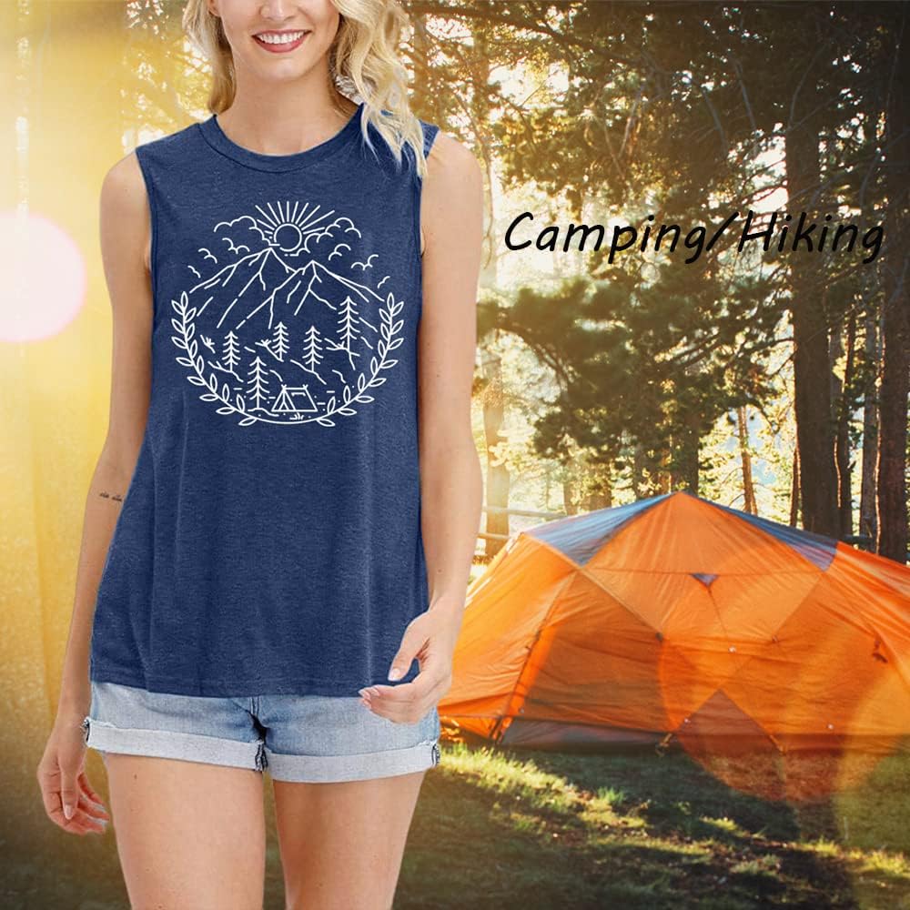 Women Hiking Camping Outdoor Tank Top Summer Mountain Nature Funny Graphic Print Round Neck Workout Athletic Sleeveless Tops