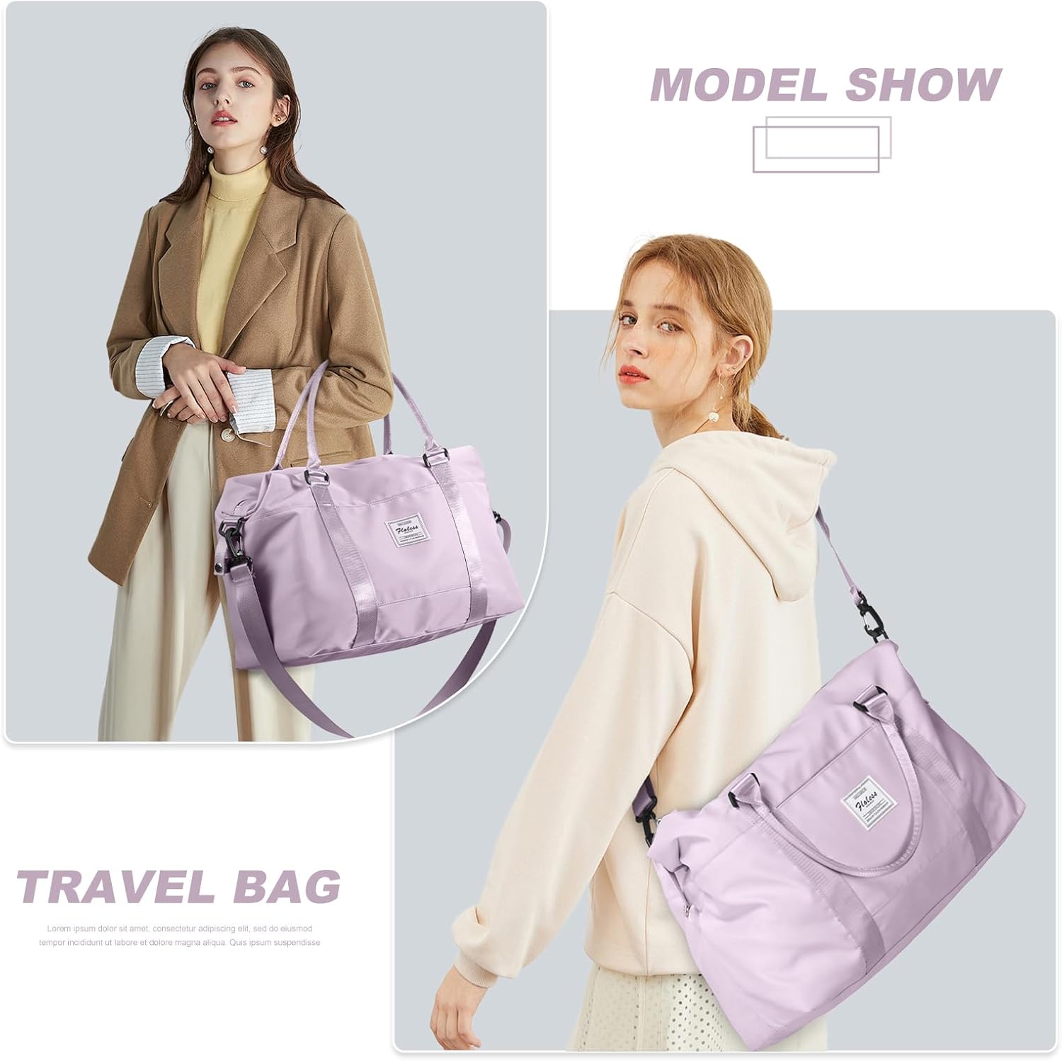 Womens travel bags, weekender carry on for women, sports Gym Bag, workout duffel bag, overnight shoulder Bag fit 15.6 inch Laptop (Large, Purple)